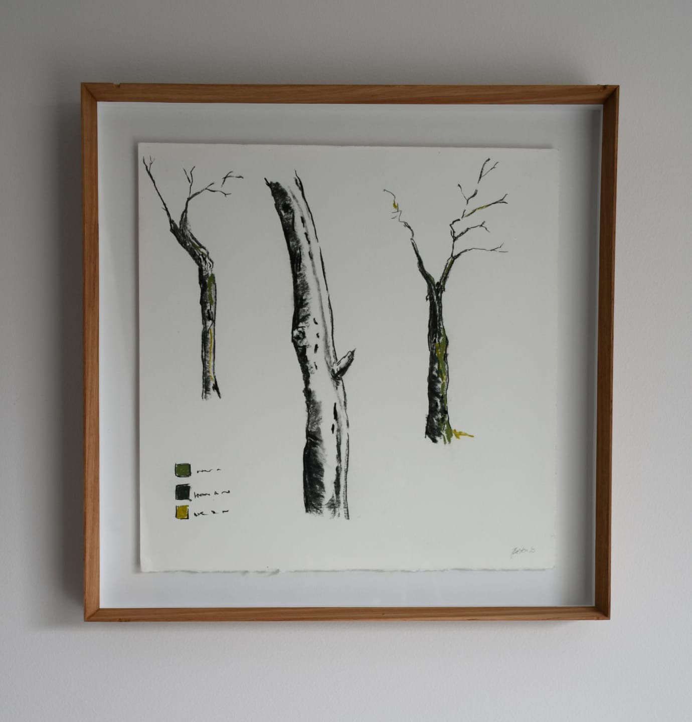 The process of extracting coal dust and transforming it into ink evokes a duality: the raw material signifies industrial power, while the gentle act of creation serves as a meditation on fragility. The process involves circular grinding of the coal powder on glass with a glass muller. The softer the sound of the grinding, the finer the ink: just a whisper is required for this ink. Marks made with charcoal pay homage to the formidable fever tree forest that stand resilient, formed through flooding and the chance alignment of timing, seed availability and water. These trees are ephemeral in nature, with a limited lifespan once the flood plain dissipates. Stoic yet vulnerable, they symbolise both the fragility of our ecosystems and the tenacity required to endure amid climate change. Utilizing coal dust and charcoal on paper, I create visual narratives that evoke the essence of the fever tree forest. The texture and depth achieved through these mediums symbolize the sediment layers of both the land and our histories. The use of coal dust specifically reflects the historical ties to mining, drawing parallels between extraction and the rich, yet vulnerable, resources we share with the natural world.